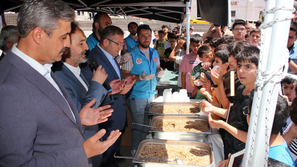 Yozgat Valisi Ziya Polat, Belediye Başkanı Celal Köse ve İl Müftüsü Ali Gülden’in katılımıyla gerçekleştirilen aşure dağıtımında, vatandaşlar aşure alabilmek için sıraya geçti. Özellikle çocukların ilgi gösterdiği dağıtımda, Vali Polat, Başkan Köse ve Müftü Gülden kendi elleriyle aşure dağıttı.