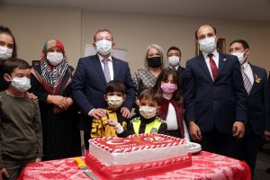 Konuşmanın ardından Cumhuriyetin 98. Kuruluş yıldönümü pastası kesilerek konuklara ikram edildi.