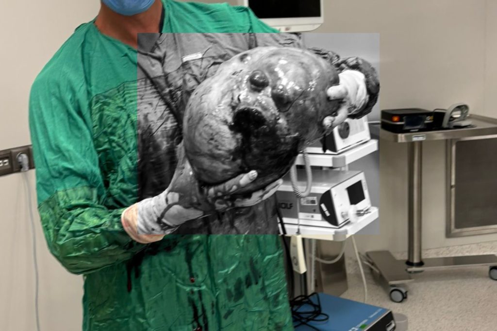 Acil servise karın ağrısı şikayetiyle başvuran hasta, ilk müdahalenin ardından Genel Cerrahi Polikliniği’ne sevk edildi. Burada yapılan detaylı tetkikler sonucunda, Genel Cerrahi Uzmanı Op. Dr. Faik Orkun Özbebit tarafından hastanın karın bölgesinde yaklaşık 30 santimetre büyüklüğünde bir kitle tespit edildi.
