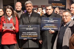 Köse, “28 Şubat’ta bizim aklımızla alay ettiler. Yaptıkları post modern darbe ile tabiri caizse ilahiyat fakültesinde kızlarımızın başlarını açtılar. Bu millet cumhurbaşkanımıza sahip çıktı, onunu sayesinde onun milletin iradesiyle dik duruşuyla ona destek oldular, sahip çıktılar, güç verdiler, kuvvet verdiler. Bugün o gün darbeyi yapanlardan hesap sorduk, hesap sormaya da devam edeceğiz. 28 Şubat’ı unutmadık, hiçbir zaman da unutmayacağız.”şeklinde konuştu.