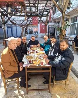 Misafirlerine Yozgat’ın simgelerinden olan Aynalı Kahvede kahvaltı ikramında bulunan Yozgat Bakkallar Odası Başkanı Mustafa Akdemir, konukları ile Yozgat ve Trabzon özelinde sohbet etti.