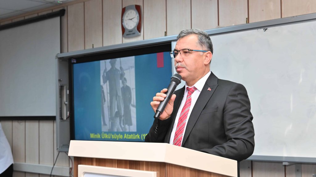 İl Milli Eğitim Müdürü İsmail Altınkaynak, programda yaptığı konuşmada Atatürk’ün Türkiye Cumhuriyeti’ni gençlere ve öğretmenlere emanet ettiğini hatırlatarak şu ifadeleri kullandı:“Gazi Mustafa Kemal Atatürk, milletimizin en zor dönemlerinde ortaya koyduğu liderlik ve vizyonla yalnızca bir devlet kurmamış, aynı zamanda geleceğimizi şekillendirecek güçlü bir eğitim anlayışının da temelini atmıştır. Atatürk’ün ‘Eğitimdir ki bir milleti ya özgür, bağımsız, şanlı bir toplum halinde yaşatır ya da esaret ve sefalete terk eder’ sözleri, biz eğitimciler için yol gösterici bir ilke niteliğindedir. Bugün görevimiz, O’nun emanet ettiği Cumhuriyet’i bilimle, çalışmayla ve eğitimle daha ileri taşımaktır.”