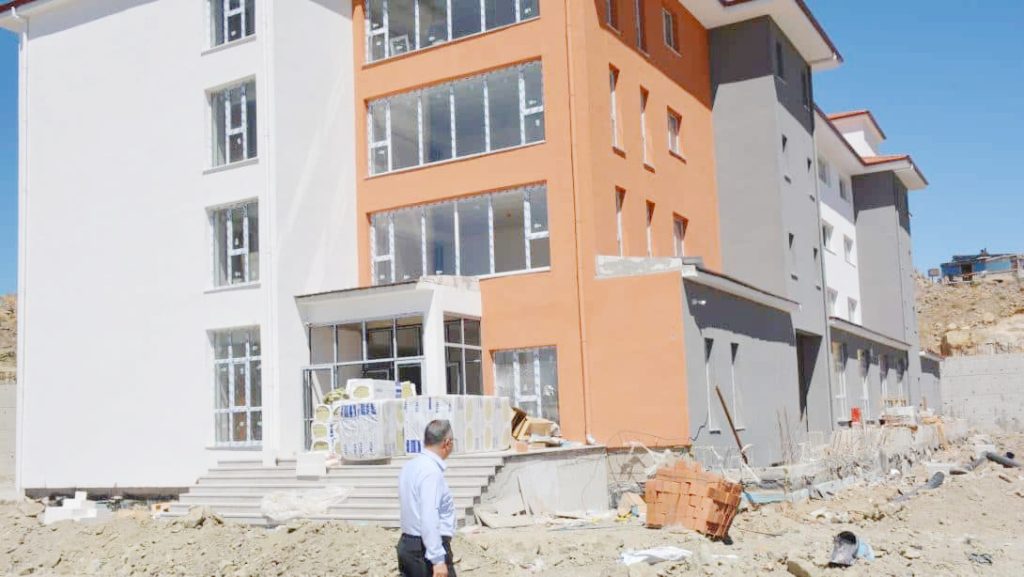 Yozgat İl Milli Eğitim Müdürü İsmail Altınkaynak, Sarıhacılı bölgesinde yapımı devam eden 24 derslikli, 4 atölyeli ve 200 öğrenci kapasiteli Meslek Lisesi inşaatında incelemelerde bulundu.