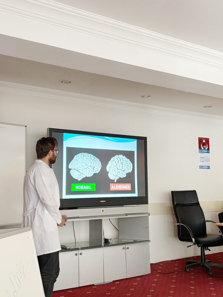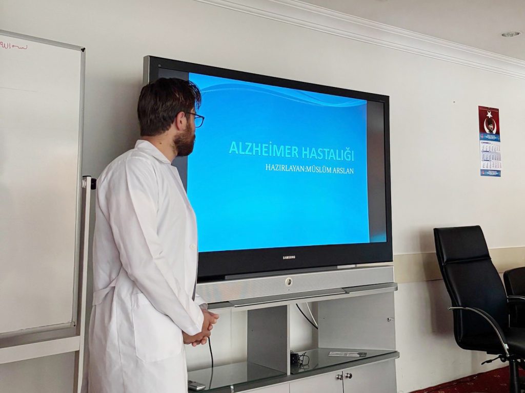 Sunumda, Alzheimer hastalığının bulguları, rehabilitasyon süreci ve hastalığın yaşlı nüfus üzerindeki etkileri hakkında bilgiler paylaşıldı. Katılımcılara, Alzheimer ve diğer demans türlerinin giderek artan bir halk sağlığı sorunu olduğu, özellikle 65-85 yaş arası kişilerde her beş yılda görülme sıklığının iki katına çıktığı vurgulandı.