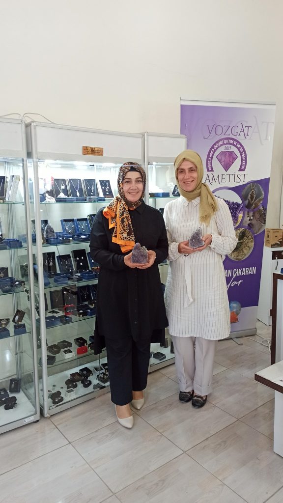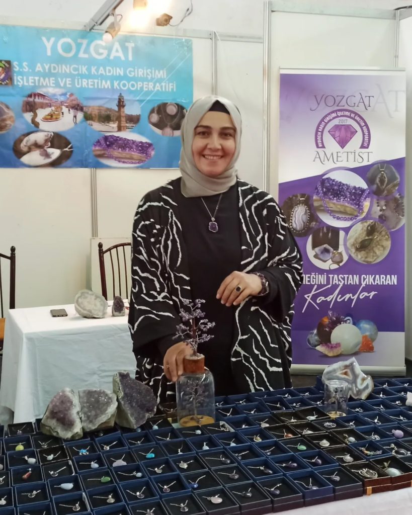 Yozgat’ın Aydıncık Kadın Girişimi İşletme ve Üretim Kooperatifi Başkanı Nimet Türker, doğal taşlar arasında önemli bir yere sahip olan ametist taşının terapide alanında da kullanılıdığını ve pozitif enerji verdiğini söyledi.