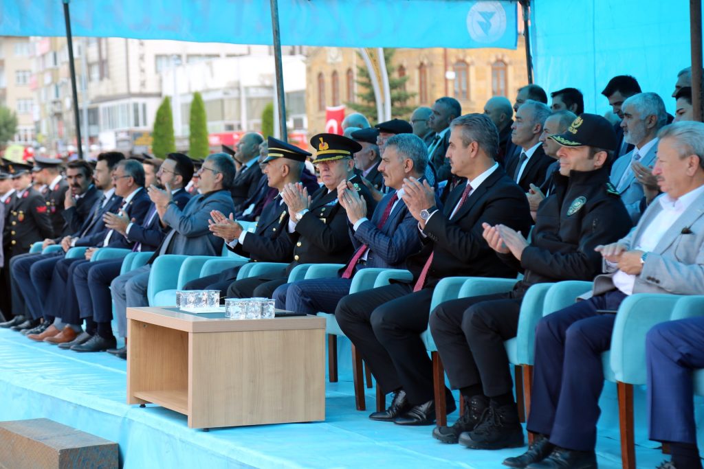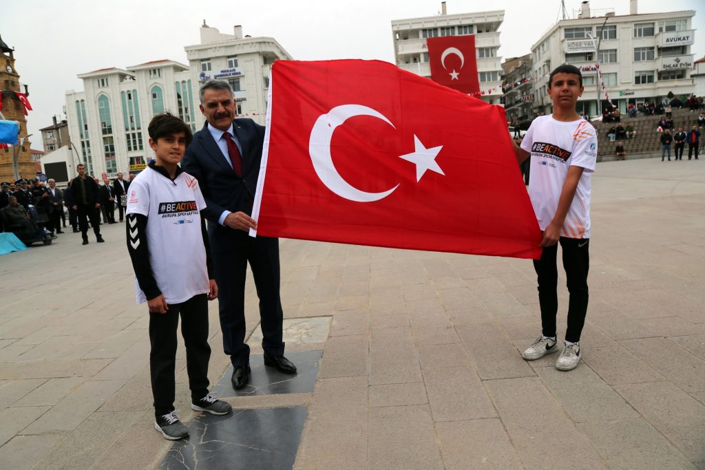 Saygı duruşunda bulunulması ve İstiklal Marşı’nın okunmasının ardından sporcular tarafından getirilen Türk bayrağı Vali Mehmet Ali Özkan’a verildi.