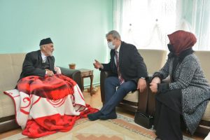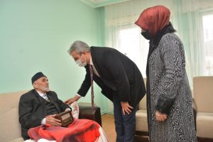 Kandil günü yaşlı çınarlara sürpriz ziyaret gerçekleştiren Başkan Köse ve eşi Nagihan Köse, Aşağı Nohutlu Mahallesinde oturan 102 yaşındaki Emin Yılmaz’ı ikametinde ziyaret etti. Duygusal anların yaşandığı ziyarette Başkan Köse, Emin Yılmaz’la sohbet ederek gönlünü aldı. Geçmişle günümüzün kıyaslandığı sohbette; eskiden hayat ve yaşam koşullarının daha zor olduğunu belirten 102 yaşındaki Yılmaz dede, “Bizim çocukluğumuzda tarlalar öküzlerle sürülürdü. Ekinlerimizi tırpanla biçer, nohut ve mercimeği düğenle hasadını yapardık. Kışın kardan ve soğuktan dışarı çıkamazdık. Şimdiler de nerde o eski kışlar. Mevsimler, iklimler, insanlar her şey değişti. Eskiden hatır gönül bilinirdi. Büyüğe saygı, hürmet vardı. Ama şimdi de her imkan var. Eskiden çalışma şartları daha ağırdı şimdi ise her şey otomatik olmuş. Hayat çok kısa daha dün gibi hatırlıyorum. Bizlerde sizler gibi gençtik. Şimdi kalan ömrümüzün son günlerini yaşıyoruz. Allah herkese sağlık afiyet versin. Çok şükür bir sıkıntımız yok. Gelmenizde bizleri çok mutlu etti.”diye konuştu.