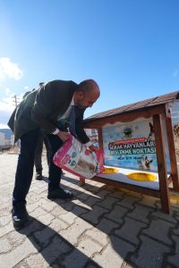 Akdağmadeni Belediye Başkanı Uzm Dr Nezih Yalçın, ilçede sokak hayvanları için oluşturulan beslenme noktalarına yiyecek bırakarak, “Onlar bize emanetlerdir.  Peygamber Efendimiz Hz Muhammed (SAV) “Siz yerdekilere merhamet edin ki göktekiler (Allah ve melekler) de size merhamet etsin diye buyurmuştur.”dedi.