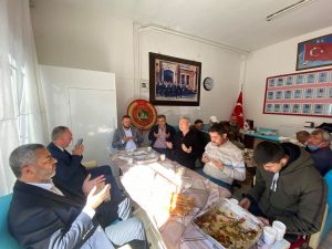 Daha sonra Yerköy Şehit Aileleri Derneğini ziyaret eden İlçe Başkanı Kaan Şahin ve beraberinde partili üyeler Şehit aileleri ile birlikte yemek yiyerek şehitler için dua etti.