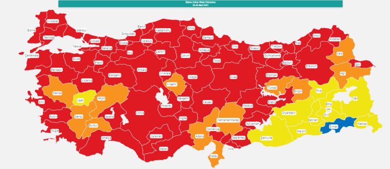 Korona haritasında kırımızı renkte olan Yerköy İlçesinde hafta sonu kısıtlaması varken, bir adım ilerideki Çiçekdağı’nda turuncu renkte olduğu için hafta sonu kısıtlaması yok.