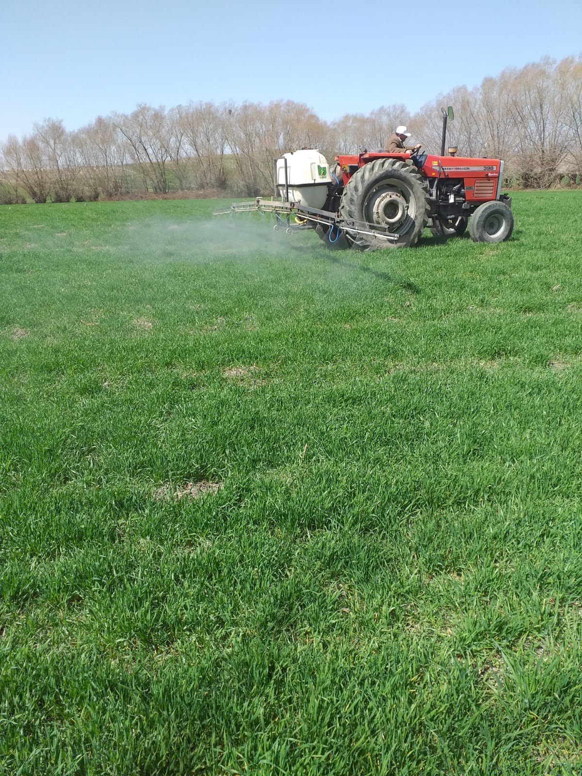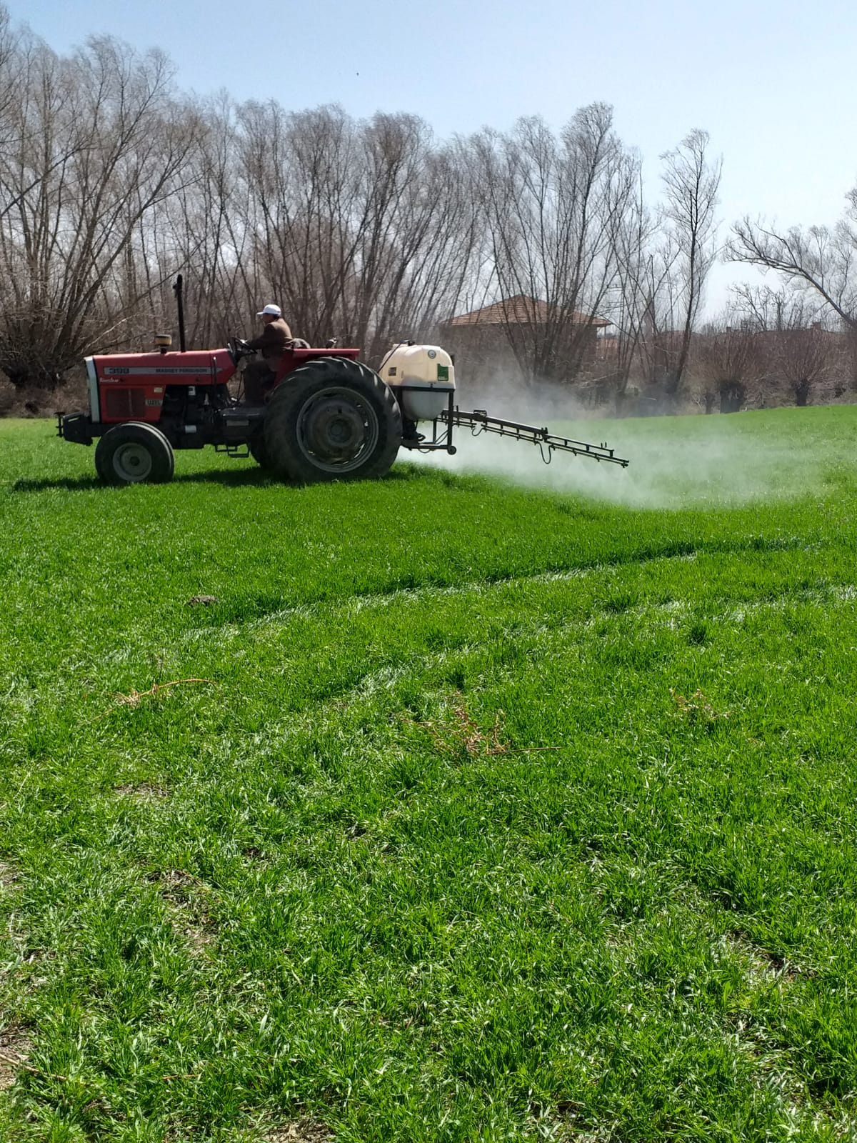 Yaklaşık bir ay önce ekili alanlarda gübreleme çalışmasını tamamlayan çiftçiler, şimdi de tarladaki yabancı otlara karşı ilaçlama çalışmasına start verdi.