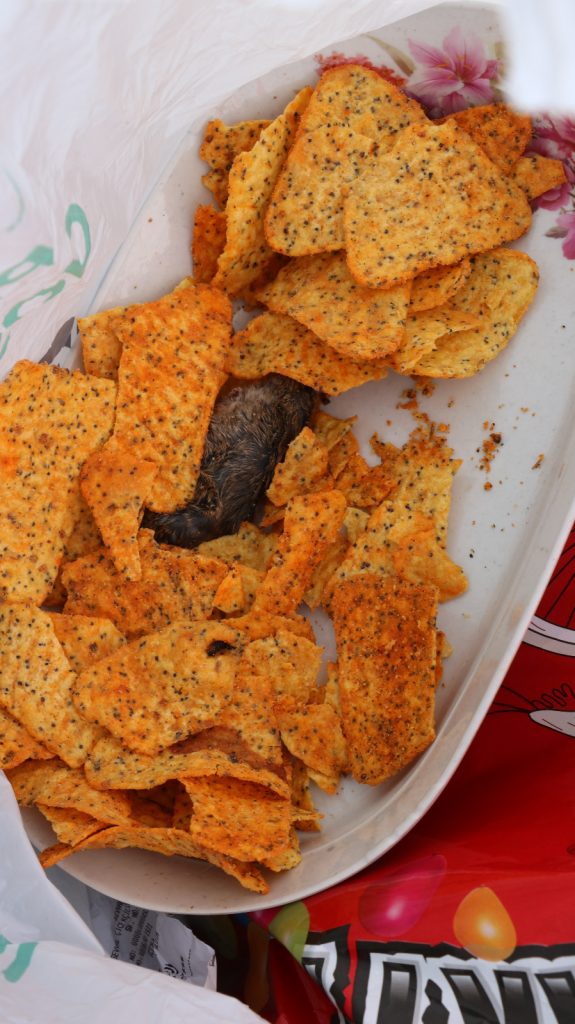 İlde kız yurdunda kalan 4 arkadaş, doğum günü kutlaması için cips satın aldı. Doğum günü kutlaması için hazırlık yapan öğrenciler, odalarına gelip cips paketini tabağa boşalttıkları anda cipsin içindeki fare ölüsünü gördüklerinde büyük şaşkınlık yaşadı. O anları cep telefonlarına kaydeden öğrenciler hemen Cumhurbaşkanlığı İletişim Merkezi (CİMER) ile Tarım ve Orman Bakanlığı Alo 174 İhbar Hattı’na iletip, oradan da polis merkezine şikayette bulundu.