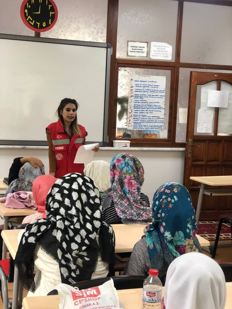 Yozgat Sosyal Hizmet Merkezi Müdürlüğü meslek elemanları Sosyolog Merve Er ile Psikolojik Danışman Kübra Şenöz, Kur’an kursundaki çocuklara yönelik düzenlenen “Mahremiyet Eğitimi’ programında çocuklar bilgilendirildi.