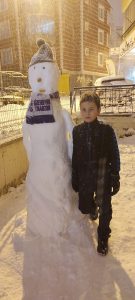 Yozgat’ta etkili olan kar yağışı kenti beyaz örtüye bürüdü. Kar’ı fırsat bilen vatandaşlarda çocukları ile birlikte evlerinin önüne kardan adam yaptı.