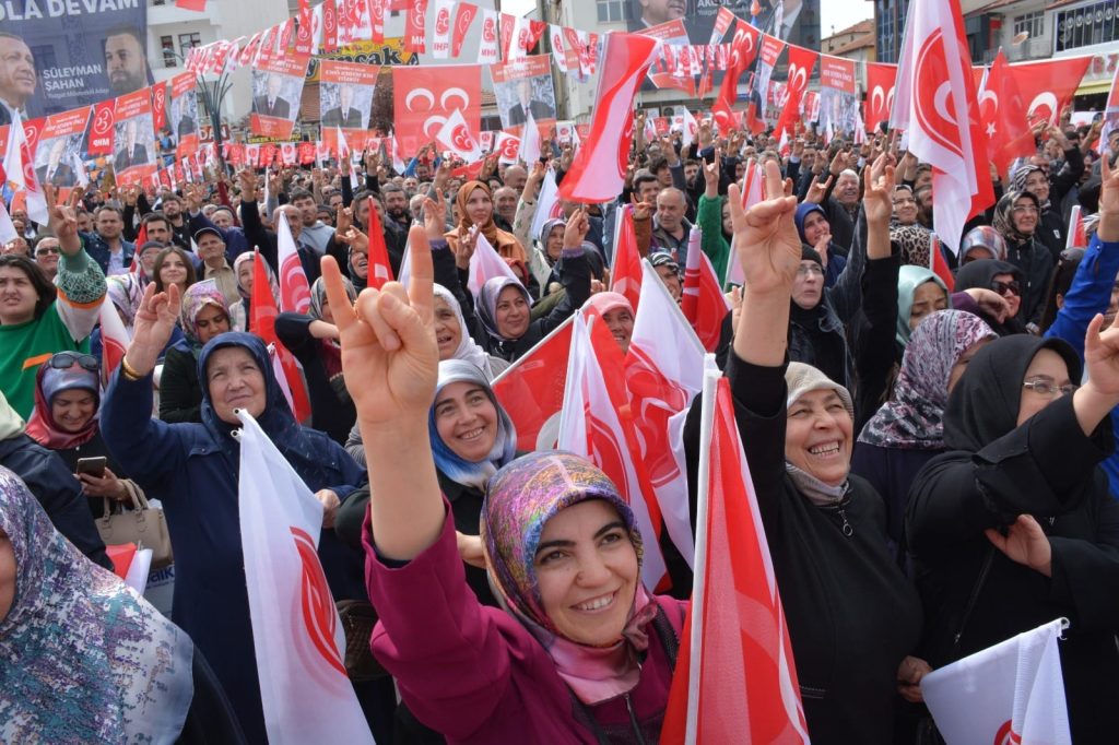 Oldukça yoğun katılımın olduğu mitingde önde yer alan Sorgunlu kadınların coşkusu dikkat çekti.