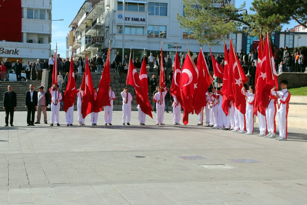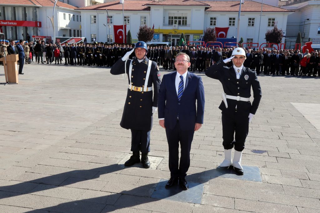 Cumhuriyet Meydanında düzenlenen törene, Vali Ziya Polat, Belediye Başkanvekili Fahri Bulut, Cumhuriyet Başsavcısı Recep Sevgili, daire müdürleri, askeri personel, öğrenciler ve vatandaşlar katıldı.