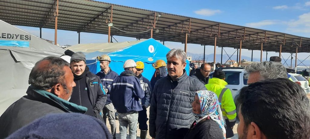 Yaşanan büyük deprem felaketinin ardından Hatay bölgesine giden Belediye Başkanı Celal Köse, burada hem koordineyi sağlıyor, hem de vatandaşların acısını paylaşıyor.