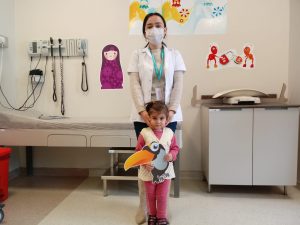 Uzm Dr Deniz Tanyeri, Polikliniğine gelen çocuklara balon şeker ve hayvan figürü maketleri vererek hastane korkularını yenmelerine de katkı sağlıyor. Çocukları ağlamadan muayenelerini tamamlayan Dr. Tanyeri’nin bu uygulaması hem çocukları hem de ailelerini mutlu ediyor.