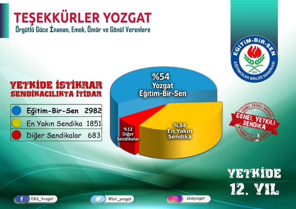 Eğitim Hizmet Kolunda faaliyet gösteren sendikalar arasında üye sayısıyla açık farkla öne çıkan Eğitim-Bir-Sen 1 Nolu Yozgat Şubesi, en yakın rakibine 1131 üye fark atarak yetkisini bir kez daha tescilledi.