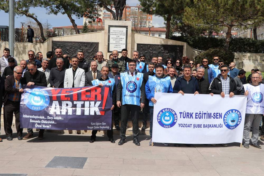 Eğitim Bir Sen Yozgat Şube Başkanı Kenan Şerefli, sendika üyelerinin katılımıyla yaptığı açıklamada eğitim kurumlarının giderek şiddetin hedefi haline geldiğini belirterek, “Artık yeter, susmayacağız” mesajı verdi. Şerefli, okullarda güvenliğin sağlanması için okul polisi uygulamasının hayata geçirilmesi ve rehberlik hizmetlerinin güçlendirilmesi gerektiğini ifade etti.