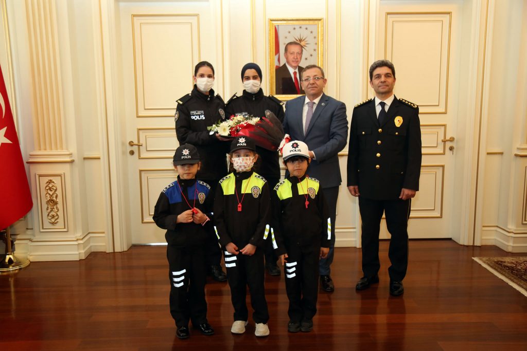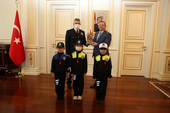 Polis Teşkilatının 177. Kuruluş Yıl Dönümü ve Polis Haftası dolayısıyla İl Emniyet Müdürü Murat Esertürk ve Polis Meslek Eğitim Merkezi (POMEM) Müdürü Zafer Kişi, beraberindeki heyetle Vali Ziya Polat’ı ziyaret etti.