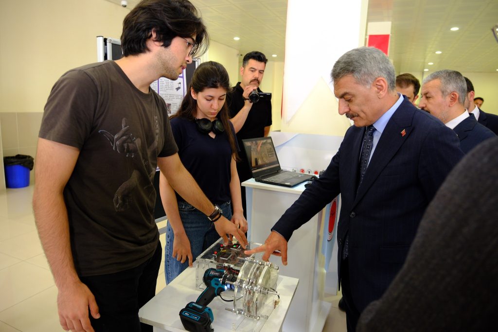 PROTOTİP SERGİSİNE YOĞUN İLGİ Vali Mehmet Ali Özkan ve protokol üyeleri, genç girişimcilerin geliştirdiği projelerin prototip sergisini gezerek her bir fikir hakkında detaylı bilgi aldı. Sergi, gençlerin teknolojiye, çevreye, sosyal sorunlara ve günlük yaşamı kolaylaştırmaya yönelik sundukları yaratıcı çözümleri yakından görme fırsatı sundu./
