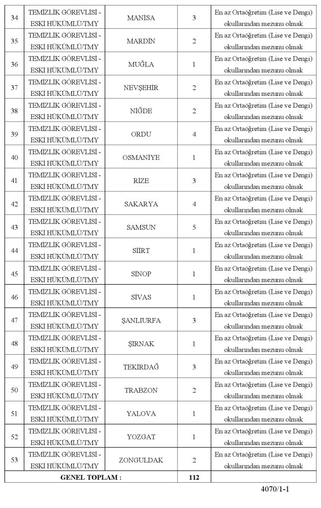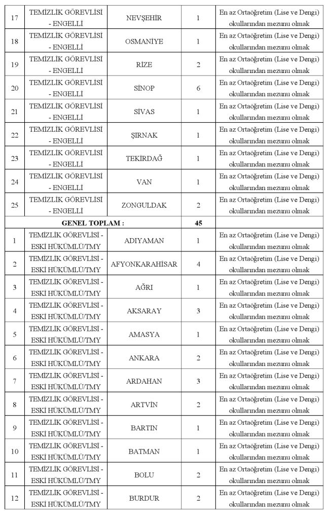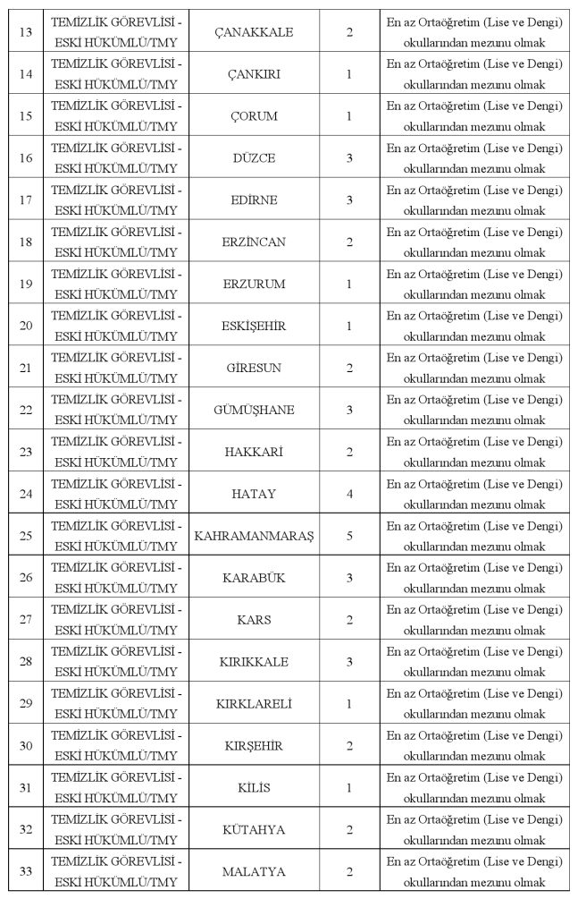 Bakanlık tarafından yapılan açıklamaya göre alımlar, Türkiye İş Kurumu (İŞKUR) aracılığıyla “temizlik görevlisi” kadrosunda yapılacak. Başvurular 27 Nisan – 4 Mayıs 2026 tarihleri arasında İŞKUR’un e-şube sistemi üzerinden, hizmet noktalarından veya Alo 170 hattı aracılığıyla kabul edilecek.