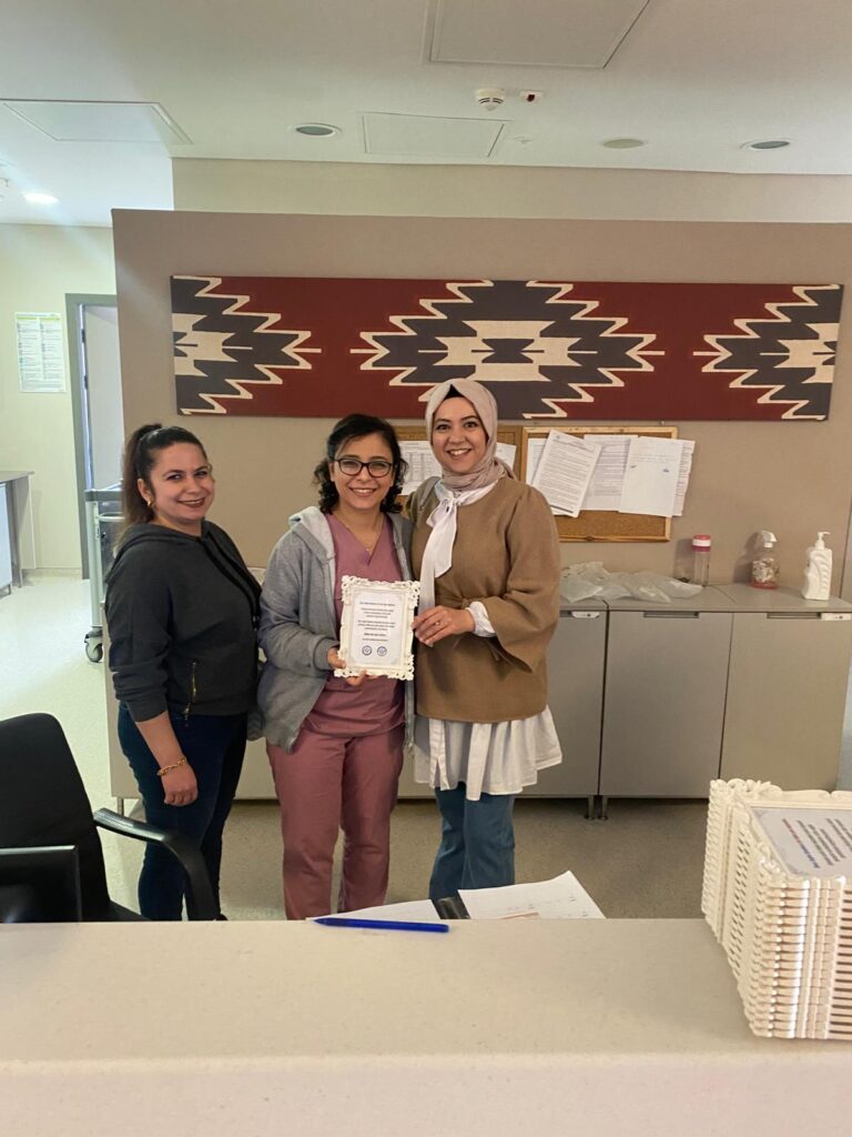 Genç-Sağlık Sendikası Yozgat İl Başkanı Nihan Çağla Yılmazer ve Başkan Yardımcısı Neslihan Bulut, hemşireler gününde nöbetteki çalışan arkadaşlarını ziyaret ederek meslektaşlarının günlerini kutladı.