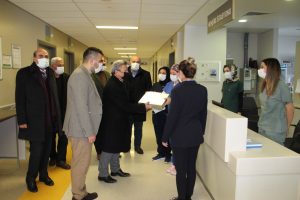 Başkan Başer, acil serviste görevli sağlık çalışanlarını da ziyaret ederek tatlı ikramında bulundu.