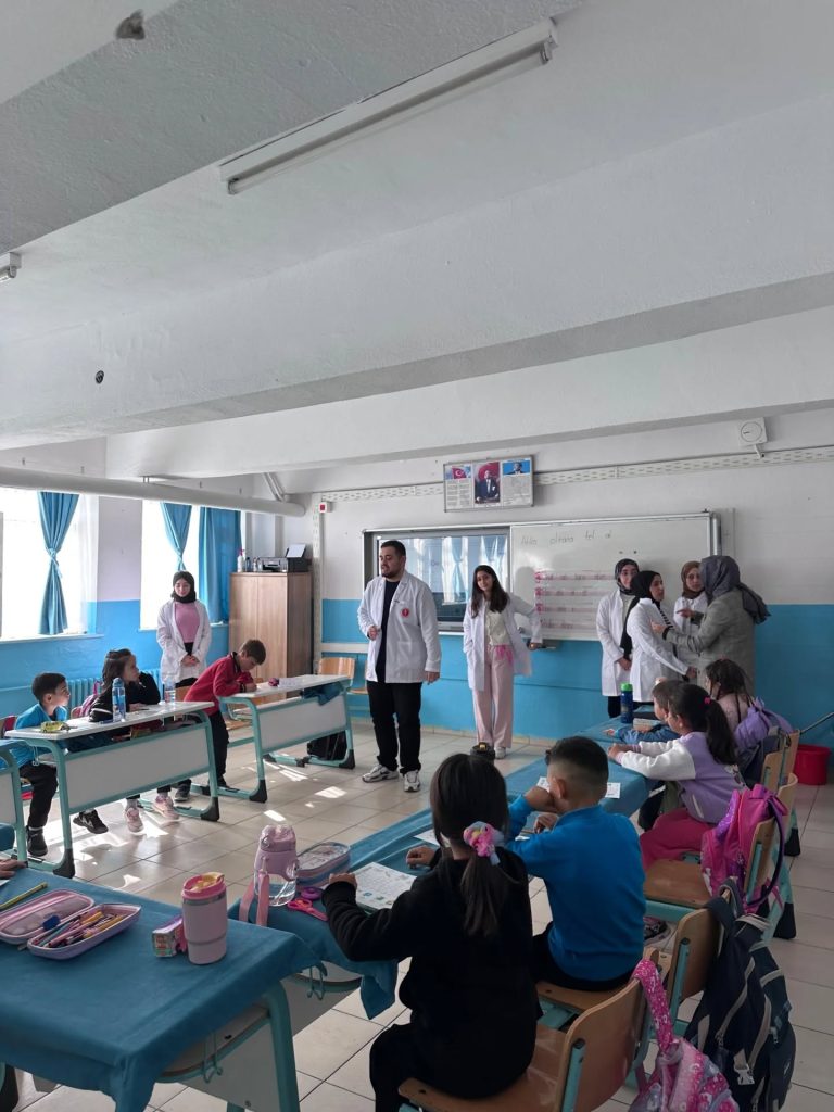 Yozgat Bozok Üniversitesi Yeryüzü Doktorları Topluluğu, minik öğrencilere hijyen ve sağlıklı beslenme konularında eğitim verdi.