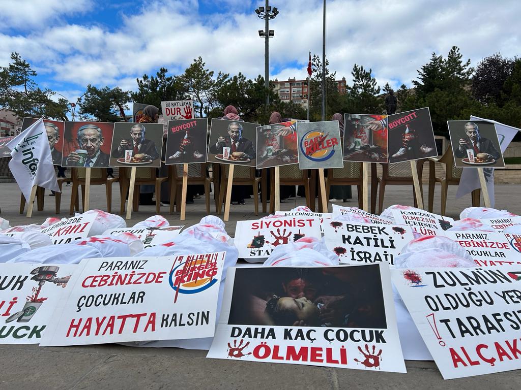 Yozgat İnfak Derneği üyeleri, Yozgat Cumhuriyet Meydanı’nda bir araya gelerek Siyonist İsrail’in Gazze’de masum sivillere yönelik saldırıları kefene sarılı çocuk maketleri ve yazılı dövizlerle protesto edildi.