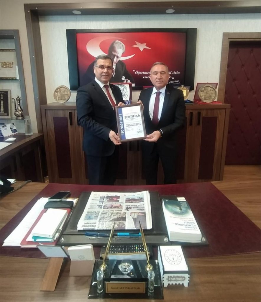 Yozgat İl Milli Eğitim Müdürü İsmail Altınkaynak, İş Sağlığı ve Güvenliği Yönetim Sistemi (TS ISO 45001:2018 – TE-EN 9001) konusunda elde edilen büyük başarıyı duyurdu.
