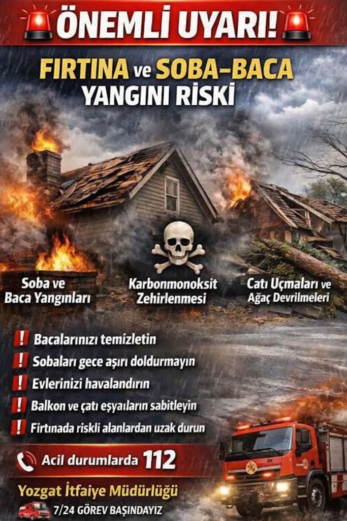 Yozgat Belediyesi İtfaiye Müdürü Muzaffer Arslan, sobalı evlerde oturan ve soba kullanımıyla birlikte yaşanabilecek karbonmonoksit zehirlenmelerine karşı vatandaşları uyardı. Özellikle gece saatlerinde sobaya yakacak eklenmesinin ciddi risk oluşturduğunu vurgulayan Arslan, hayati önem taşıyan tedbirlerin ihmal edilmemesi gerektiğini söyledi.