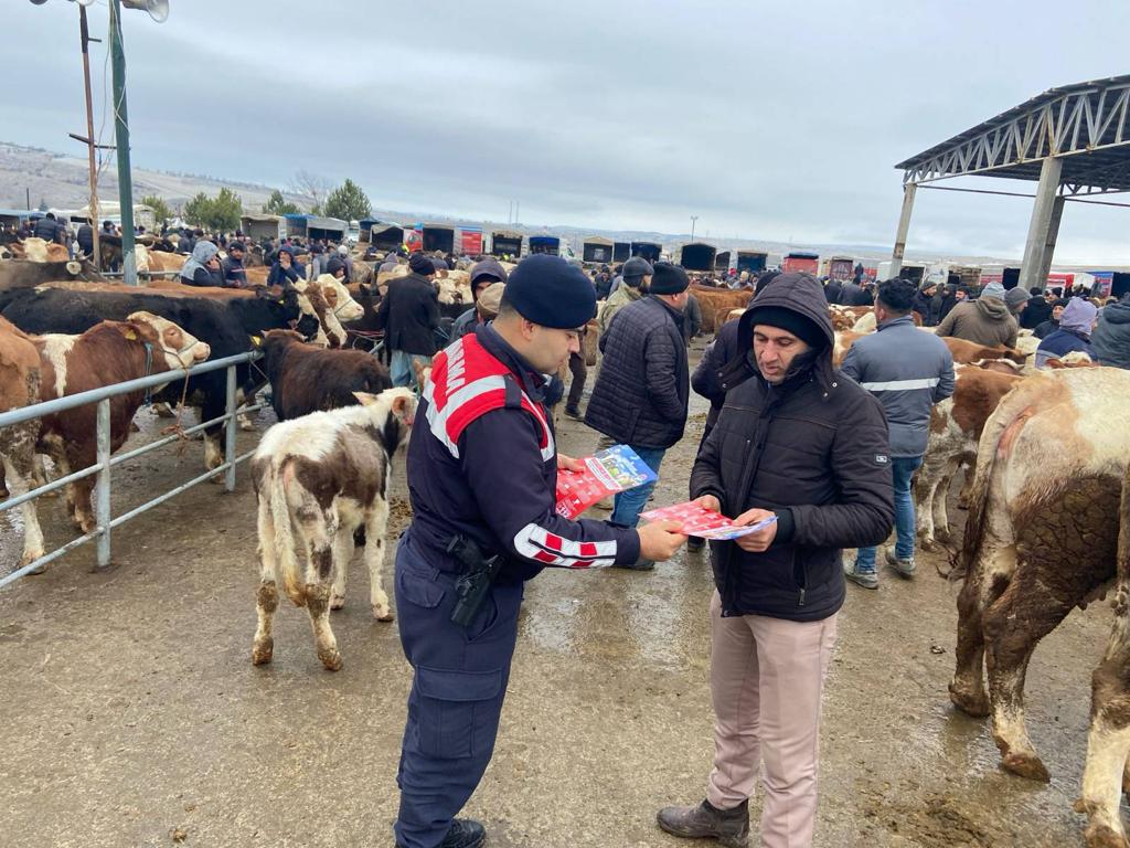 Yozgat İl Jandarma Komutanlığı, bölgede artan hayvan hırsızlıklarını engellemek amacıyla Sorgun ilçesinde hayvan pazarında vatandaşlara yönelik önemli bilinçlendirme çalışmaları başlattı.