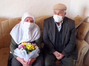 Sağancı çifti ise sürpriz ziyaret için teşekkür etti. Ömer Sağancı, görücü usulü evlendiklerini belirterek, “Yarım asırlık evliliğimiz acı ve tatlı günlerle geçti. Zaman zaman tartışmalarımız da oldu. Bir su bulanır, geri durulur, inişli ve yokuşlu günler geçer; ama sabırlı olmak gerekiyor. Anne ve babalar çocuklarına örnek olmalı. Sevgi ve saygı olacak. Sevginin saygının olmadığı yerde hayır ve bereket olmaz” dedi. Selver Sağancı da, eşine ve işine sahip çıkarsan sorun olmayacağını belirterek, “Eskiden kadınlar, elinde ibrik, leğen, eşi abdest alırken suyunu dökerdi. Şimdikilerde o yok, birbirleriyle bir tartışmada ayrılıyorlar. Sabırlı olmak gerekiyor. Tek bildiğim eşin ve işine sahip olacaksın. Gençlerimiz işine ve eşine sahip olsunlar sabırlı olsunlar” diye konuştu.