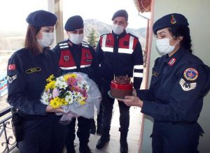 Yozgat İl Jandarma Komutanlığında görevli kadın astsubaylar, evlilik yıl dönümleri 14 Şubat Sevgililer Günü olan Sağancı çiftine, 50’nci evlilik yıl dönümlerinde sürpriz ziyarette bulundu. Sağancı çifti, Jandarma Astsubay Üstçavuş Saadet Öz ve Astsubay Kıdemli Çavuş Güliz Şahin’i ellerinde çiçek ve pasta ile kapıda görünce şaşırdı. Astsubaylar, bir süre sohbet ettikleri çiftin 50’nci evlilik yıldönümünü pasta keserek kutladı. Öz ve Şahin, yaşlı çifte dolandırıcılık, kadına şiddet ve hırsızlık olaylarına karşı da uyarıcı bilgiler verdi.
