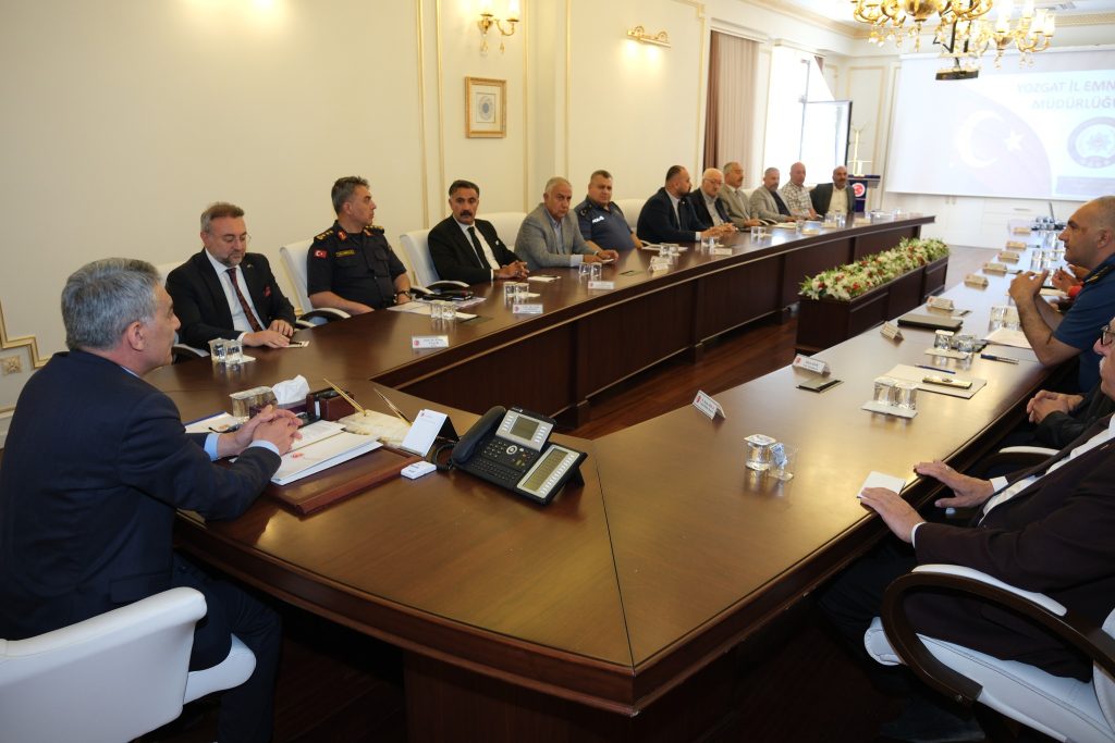 Vali Özkan, yaptığı açıklamada, “’Yozgatımızın huzuru mottosuyla çıktığımız yolda hem kurumlarımızın hem de hemşehrilerimizin desteğiyle ilerliyoruz. Bugün de yaz aylarında yaşanabilecek yoğunluk ve olası güvenlik risklerine karşı alınması gereken önlemleri değerlendirmek üzere bir aradayız. Orman yangınları, çoban ateşleri ve anız yakmaları en çok dikkat ettiğimiz konular arasında yer alıyor.” ifadelerini kullandı.