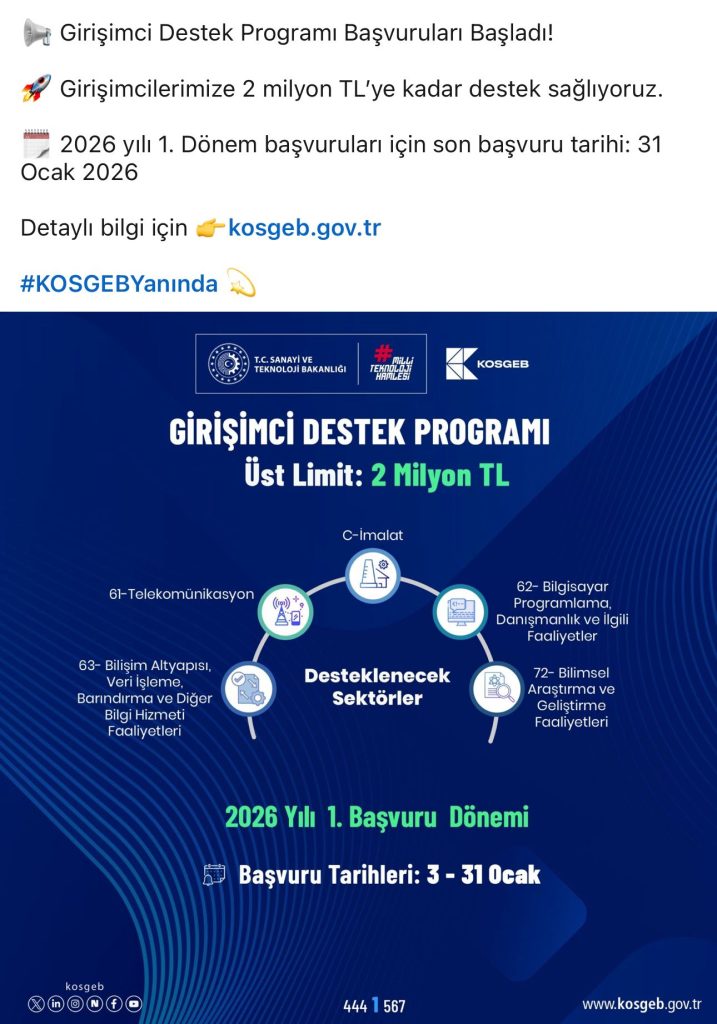 KOSGEB’in 2025 yılı destek verileri de dikkat çekti. İş Geliştirme Desteği kapsamında yıl boyunca: