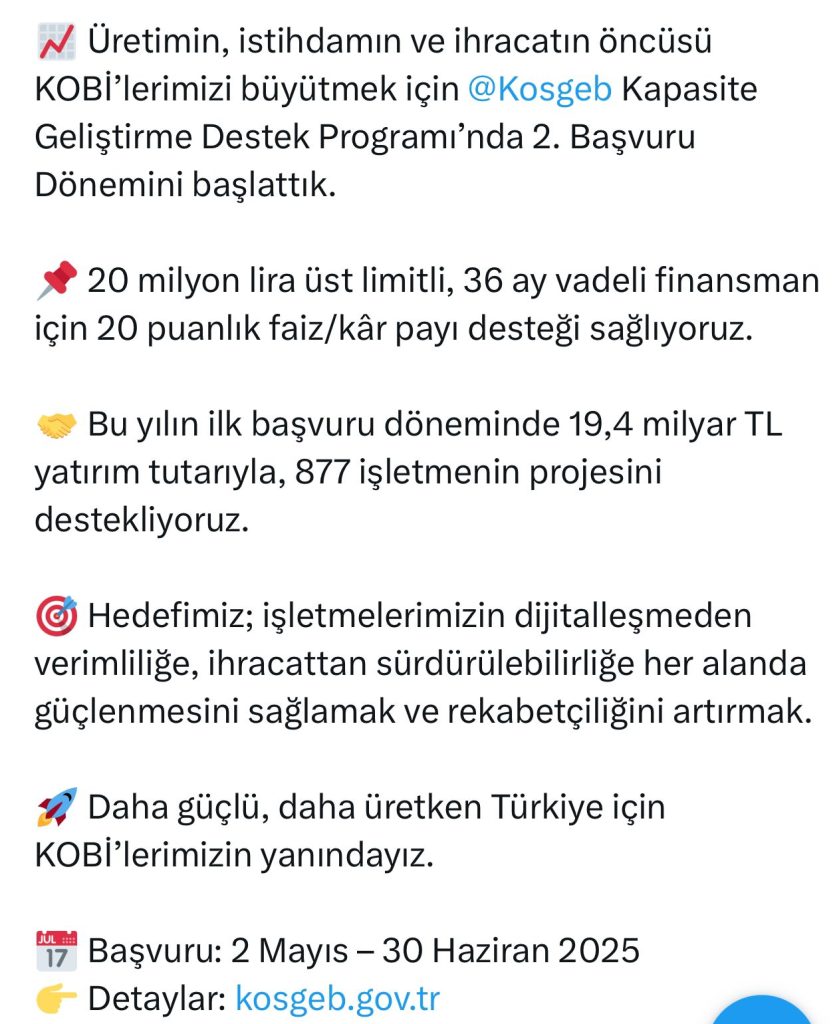 Detaylı bilgi ve başvuru için:www.kosgeb.gov.tr