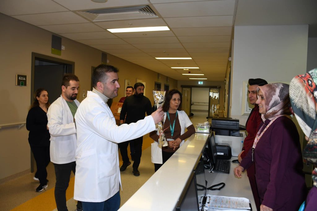 Yozgat Şehir Hastanesi Başhekimi Uz Dr Mustafa Kozan, beraberinde Sağlık Bakım Hizmetleri Müdürü Elif Tinel ile birlikte 8 Mart Dünya Kadınlar Günü dolayısıyla hastanede çalışan kadın sağlıkçılara karanfil hediye ederek günlerini kutladı.
