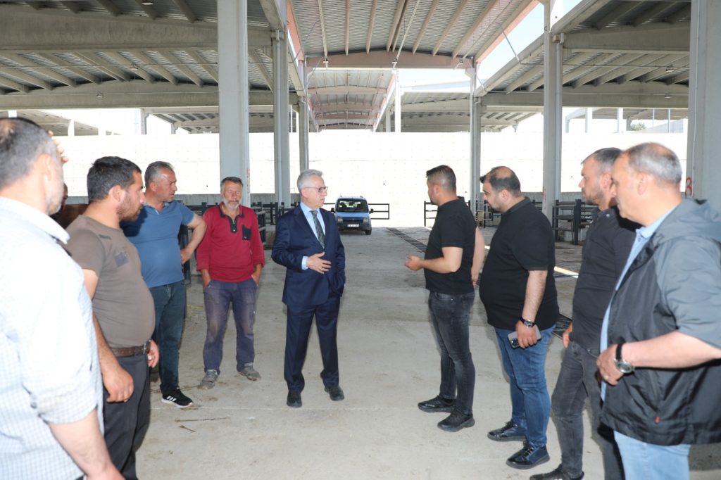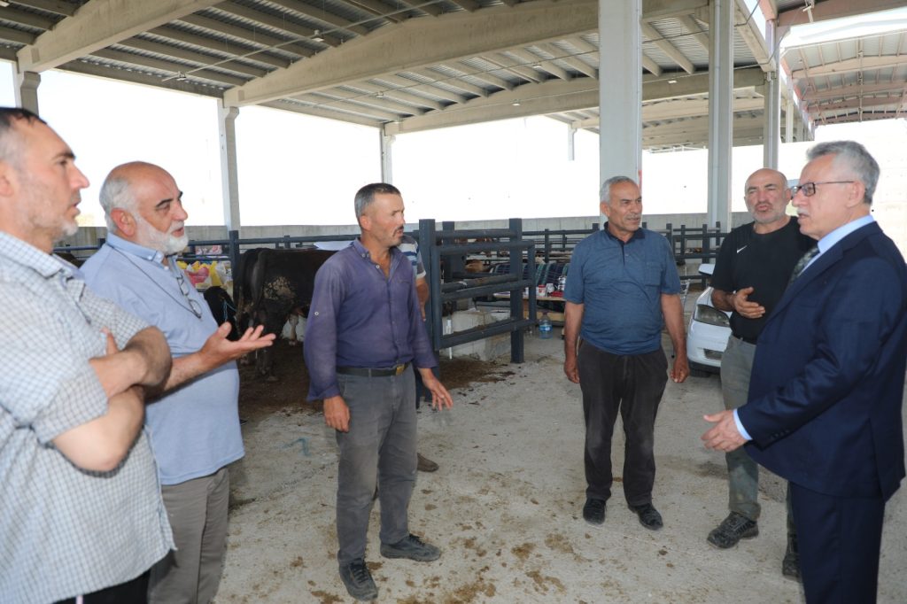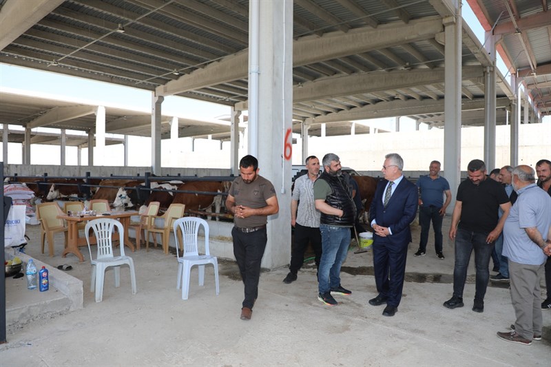 Yozgat Belediyesi Modern Kesimhane ve Hayvan Pazarında incelemelerde bulunan Belediye Başkanı Dr. Kazım Arslan kurbanlık hayvan satan üreticilerden de pazar yeri hakkında bilgi aldı.