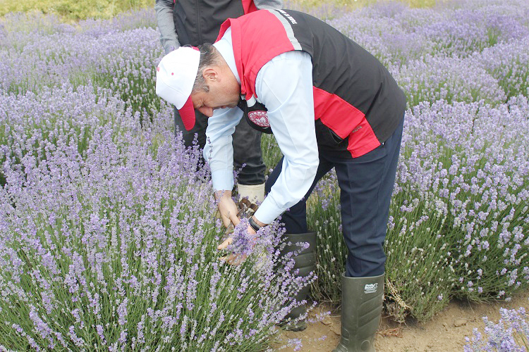 Demonstrasyon çalışmasının 7 dekarlık alanda uygulandığını kaydeden Şentürk, “Burasının dikimi 2021 yılında İl Müdürlüğümüz teknik personellerinin kontrolünde yapıldı. Şu anda hasadını yaptığımız Sarıhacılı Mahallesi’nden önder çiftçimiz Harun Haliloğlu’nun fedakâr çalışmaları ve gayretleri ile lavanta bahçemiz çok güzel durumdadır. Kendisine bu gayretleri için teşekkür ediyorum. Bu bahçede, teknik tavsiyelerimiz doğrultusunda çiftçimizin yaptığı iyi bakımdan dolayı ilk yıldan itibaren ürün alınmaktadır. Alınan çiçeklerden distilasyon yöntemiyle yağ çıkarılmakta, ayrıca ürünün bir kısmı lavanta kesesi haline getirilerek yağı ile birlikte katma değerli ürün olarak pazarlanmakta. Bu yaklaşımı takdir ediyoruz” diye konuştu.