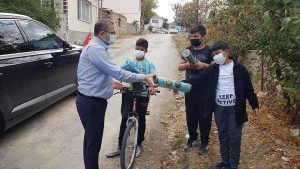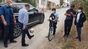 Bahadın Beldesi ziyareti dönüşü sokakta oynayan çocuklara hediyeler veren Vali Polat, sohbet ederek nasihatlerde bulundu.