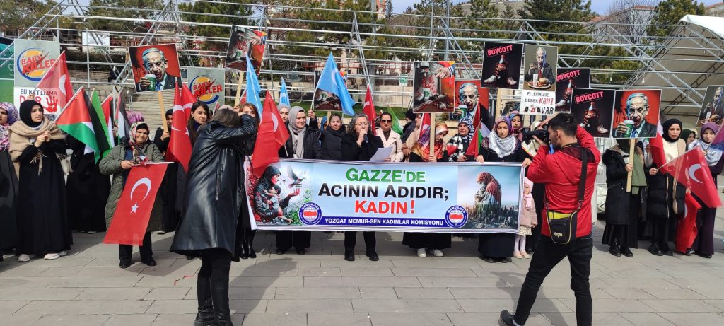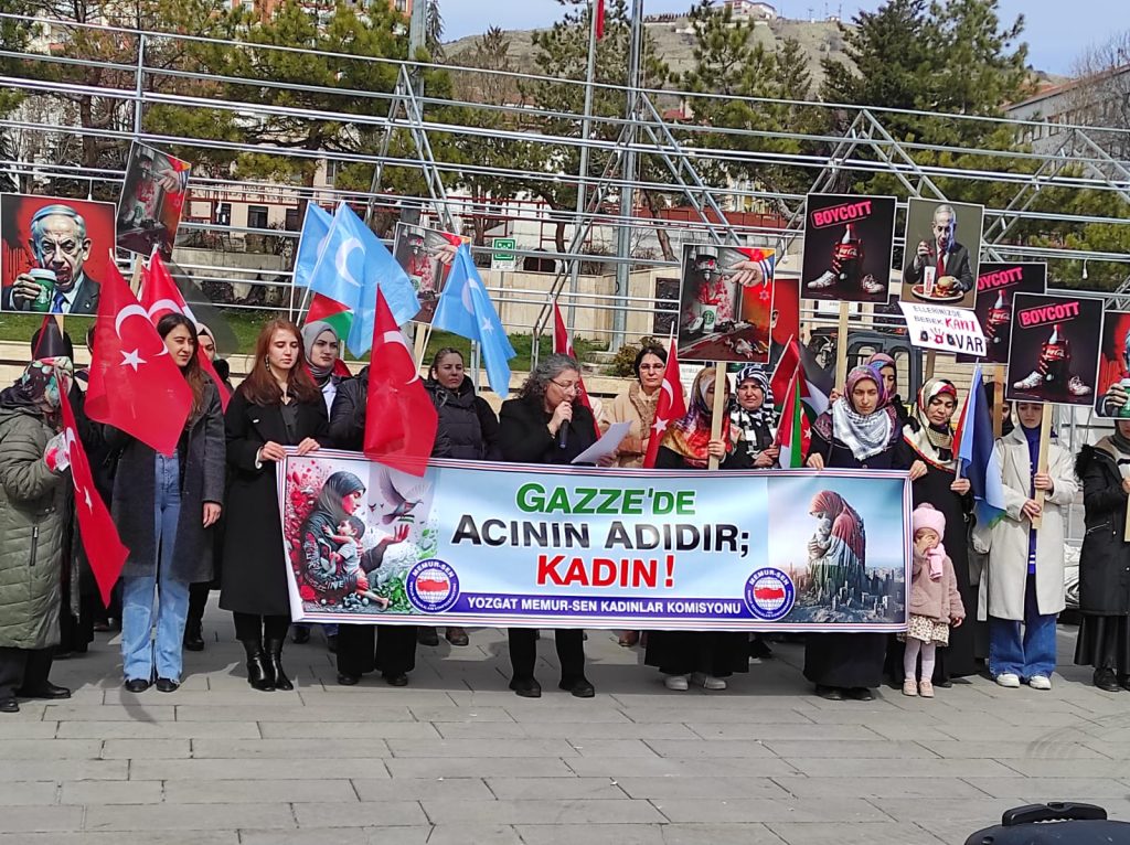 Yozgat Memur-Sen Kadınlar Komisyonu tarafından 8 Mart Dünya Kadınlar Günü dolayısıyla Yozgat Cumhuriyet Meydanı’nda “Gazze’de Acının Adıdır Kadın” temalı etkinlik düzenlendi.