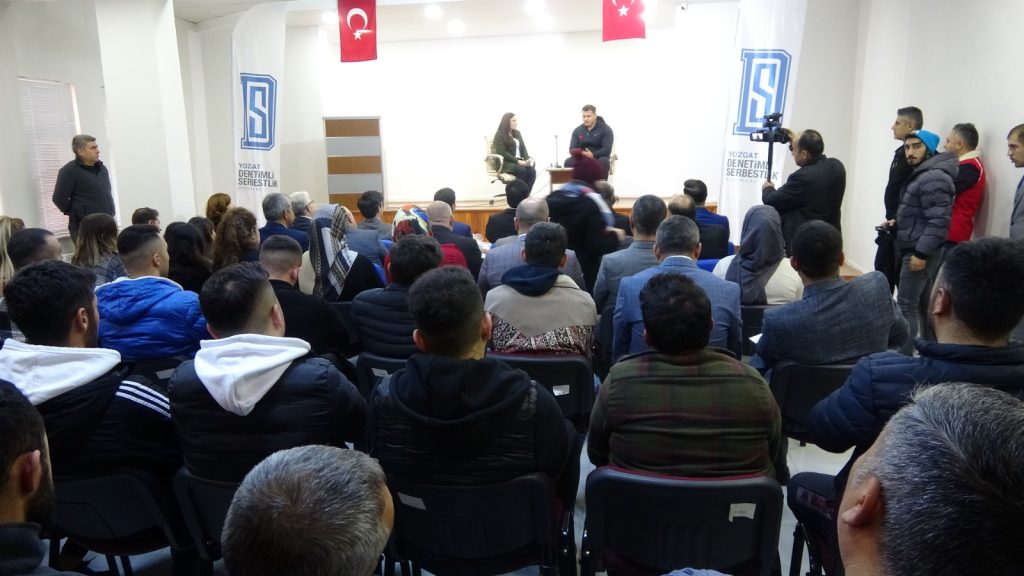 Milli güreşçi Rıza Kayaalp, bağımlılıkla mücadele kapsamında Yozgat’ta denetimli serbestlik yükümlülerine yönelik düzenlen söyleşi programına katıldı.