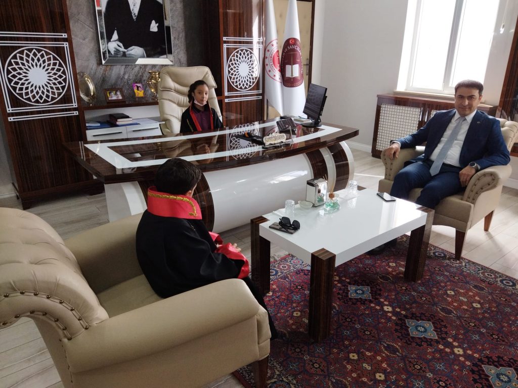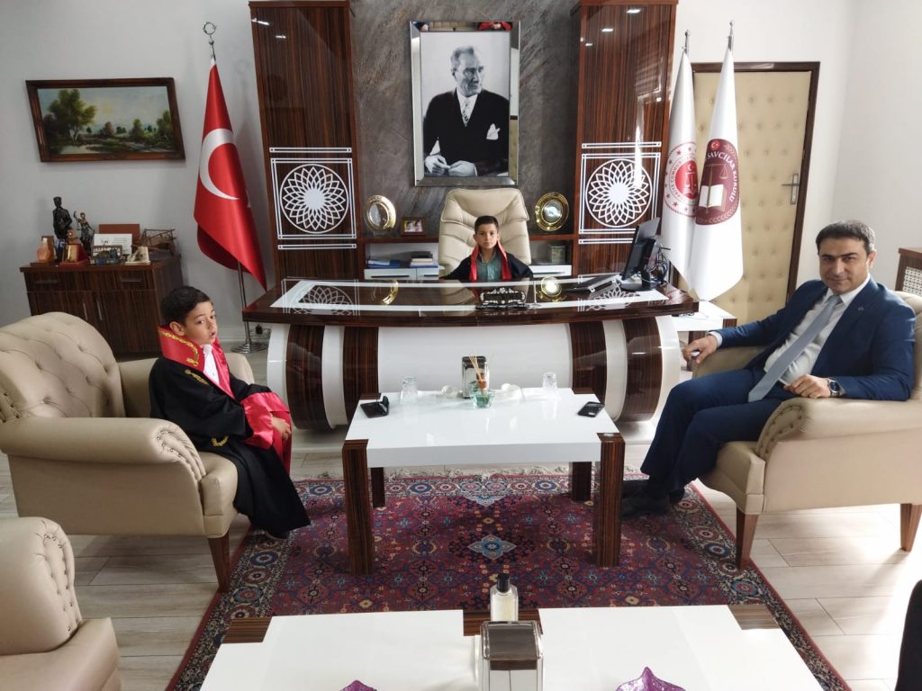 Yozgat Cumhuriyet Başsavcısı Hasan Uçak, 23 Nisan Ulusal Egemenlik ve Çocuk Bayramı etkinlikleri kapsamında makamını temsili olarak Gazi Mustafa Kemal İmam Hatip Ortakulu öğrencileri; 2/A sınıfı Emin Metehan Deniz, 4/A Muhammed Burak Çankaya ve 5/A İrem Buse Can’a  devretti.