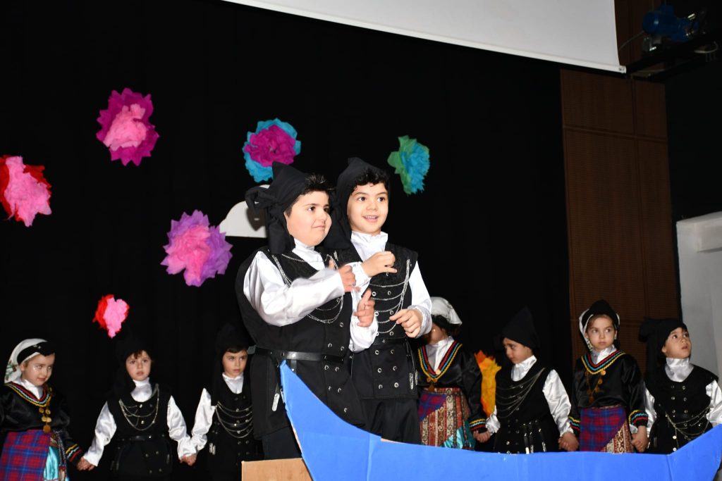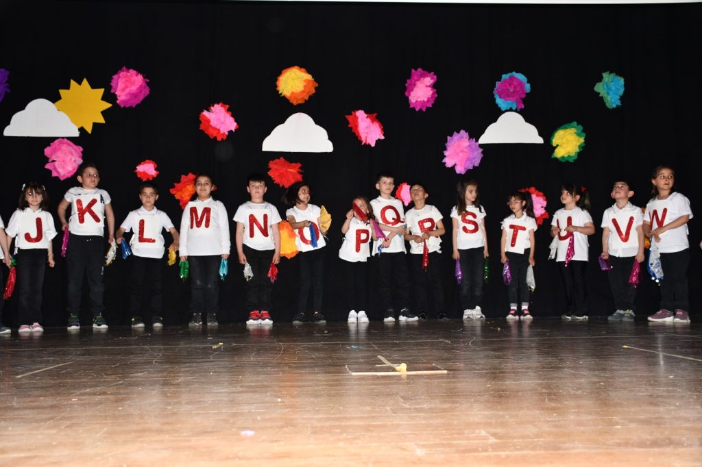 Programda; ilkokul 1. ve 2.sınıf öğrencilerin yanı sıra anaokulu öğrencilerinin; Anadolu ateşi dans gösterisi, horon, uğur böcekleri, ben Türk çocuğuyum dans gösterileri ve İngilizce şarkı koro ritim dansları gösterisi davetlilerden büyük alkış aldı.