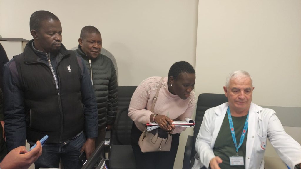 Nairobi Hastanesi heyeti, hastaneyi ziyaret ederken farklı birimleri gezerek hastane işleyişini yerinde inceledi.