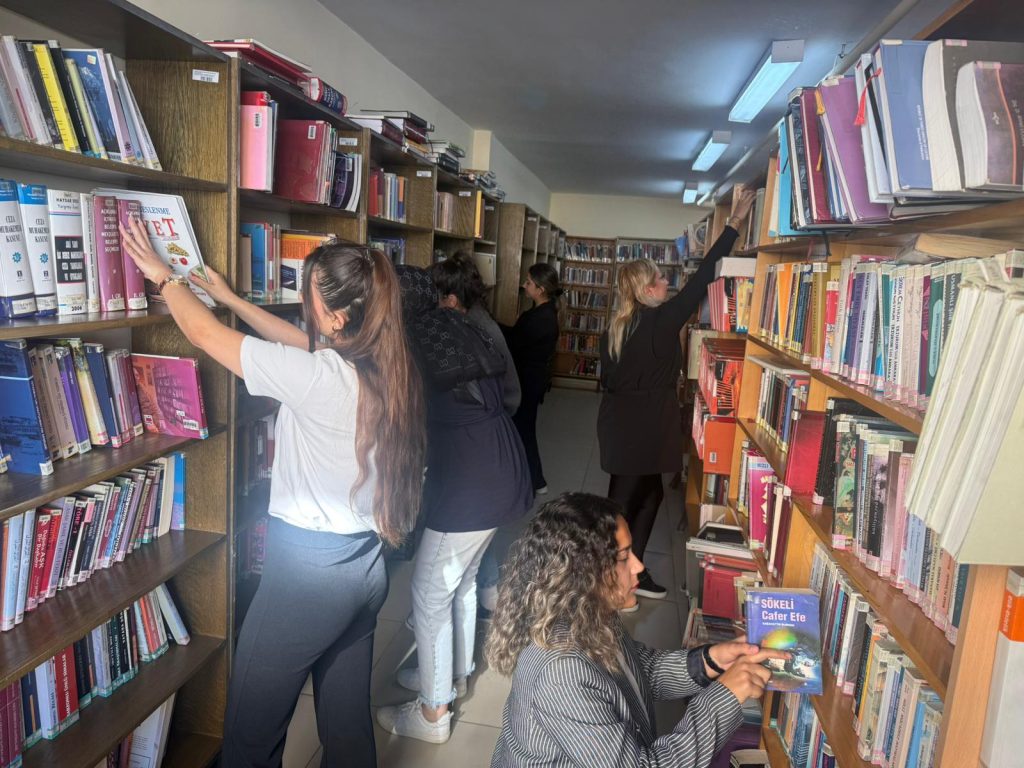 Etkinlikte öğrenciler, kütüphane raflarını düzenledi, kitapların sınıflandırılmasına destek oldu ve kütüphane ortamının daha düzenli ve erişilebilir hale gelmesi için gönüllü olarak çalıştı.