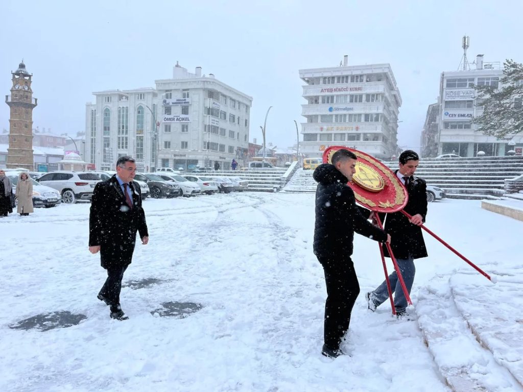 Program, İl Milli Eğitim Müdürü İsmail Altınkaynak’ın Atatürk Anıtı’na çelenk sunumuyla başladı. Ardından saygı duruşunda bulunuldu ve İstiklal Marşı okundu.